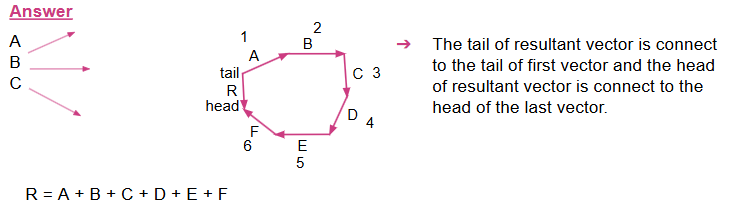 • The resultant of all vectors can be obtained by drawing a vector from the tail end of first to the head end of the last vector
