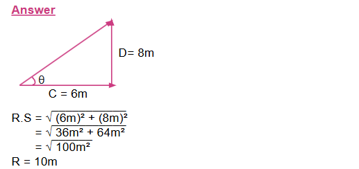 • If vectors A and B are perpendicular to each other, then the magnitude of the resultant vector R is obtained using the Pythagoras theorem.
