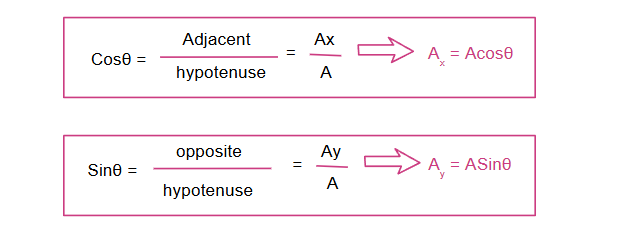 • Ax and Ay are at a right angle (900), the magnitude of the resultant vector can be calculated using the Pythagorean Theorem.