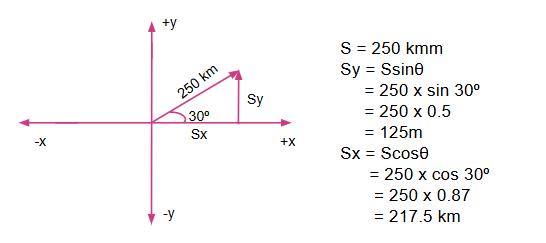1. A motorist undergoes a displacement of 250 km in a direction 30⁰ North of East. Resolve this displacement into its components.