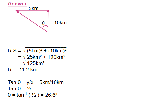 3. A car travels 10 km due North and then 5 km due West. Find graphically and analytically the magnitude and direction of the car’s resultant vector.