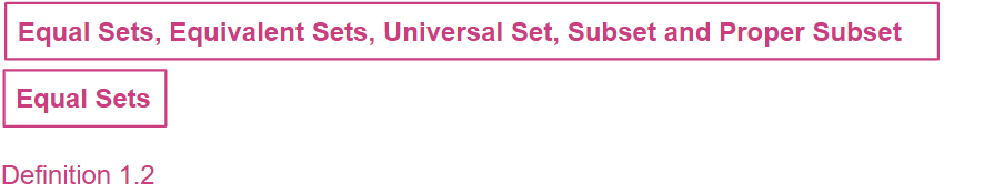 - Two sets 𝐴 and 𝐵 are said to be equal if and only if they have exactly the same or identical elements.