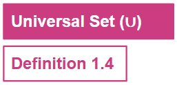 A universal set (usually denoted by U) is a set which has elements of all the related sets, without any repetition of elements.