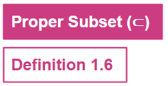 If 𝐴 ⊆ 𝐵 and 𝐴 ≠ 𝐵, then 𝐴 is called the proper subset of set 𝐵 and it can be written as 𝐴 ⊂ 𝐵.
