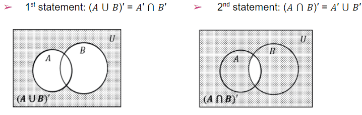 For the complement set of 𝐴 ⋃ 𝐵 and 𝐴 ⋂ 𝐵,