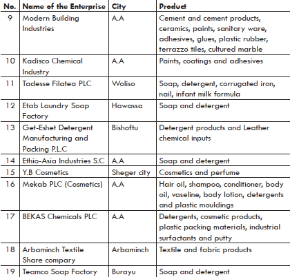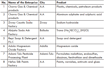 3. List at least 15 chemical industries that are found in Ethiopia.