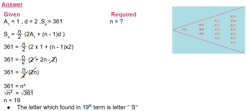 b. If the total number of letters in the pattern is 361, which letter will be in the least column?