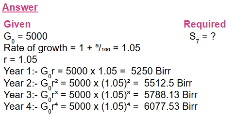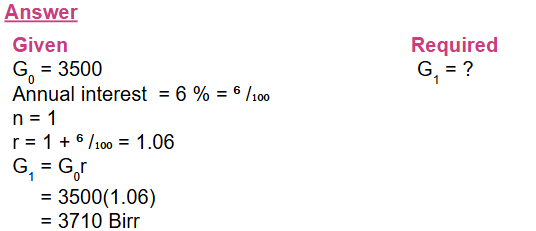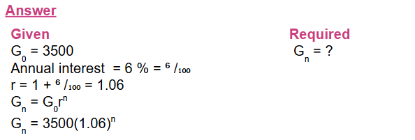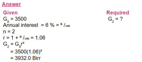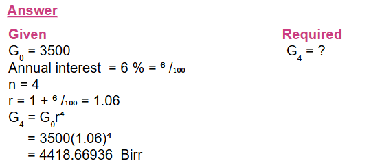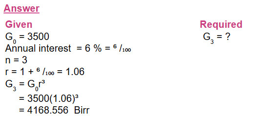 4) A woman deposits Birr 3,500 in a bank account paying an annual interest at a rate of 6%. Show that the amounts she has in the account at the end of each year form a geometric sequence