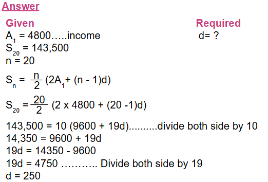 A man was injured an accident at work. He receives a disability grant of 4800 ETB in the first year. This grant increases by fixed amount each year.