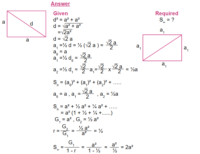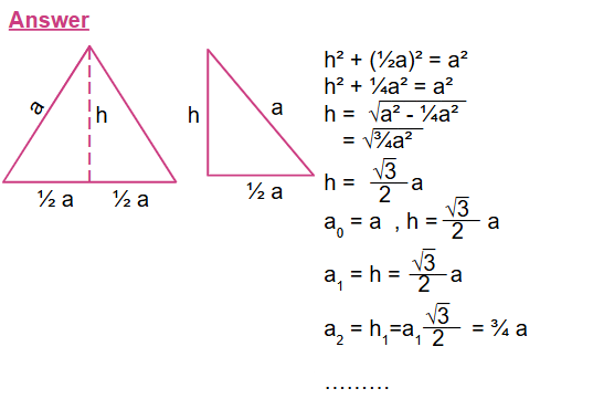 2. Given an equilateral triangle with side length a, its height is the side of another  equilateral triangle. The height of this triangle is then the side of the third equilateral triangle and so on, as shown in the diagram below. Find the sum of the areas of all these triangles.