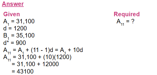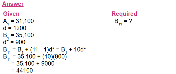1. A job applicant finds that a firm A offers a starting salary of Birr 31,100 with a guaranteed raise of Birr 1,200 per year, whereas firm B offers a higher starting salary of Birr 35,100 but will guarantee a yearly raise of only Birr 900.