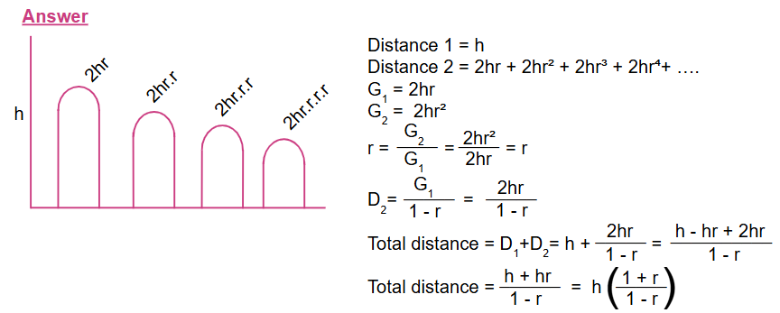 1. Suppose a ball is dropped from a height of h m and always rebounds to r% of the height from which it falls. Show that the total vertical distance that could be covered by the ball is h((r+1)/(1-r))m .Assume that the ball will never stop bouncing.